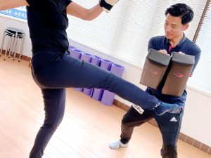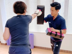 グローブをつけてパンチやキック!引き締め効果抜群!